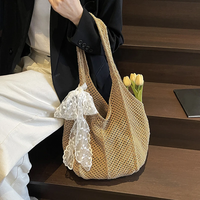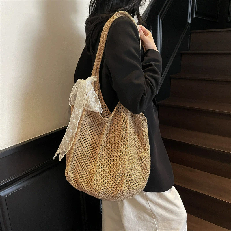 Casual Commuting Tote Bag Large Capacity Hand Woven Women Shoulder Bag Summer Lazy Style Vacation Beach Bag