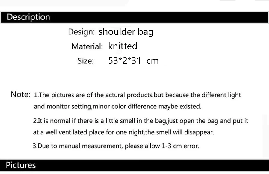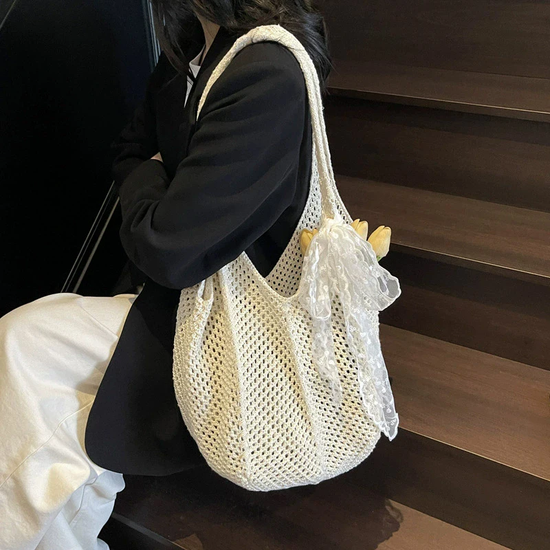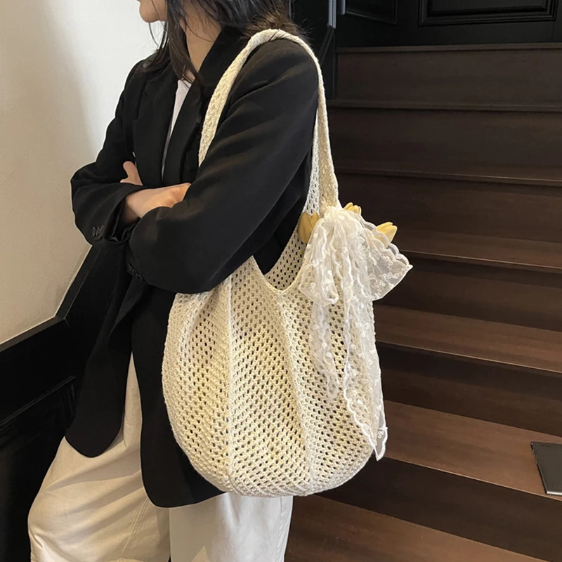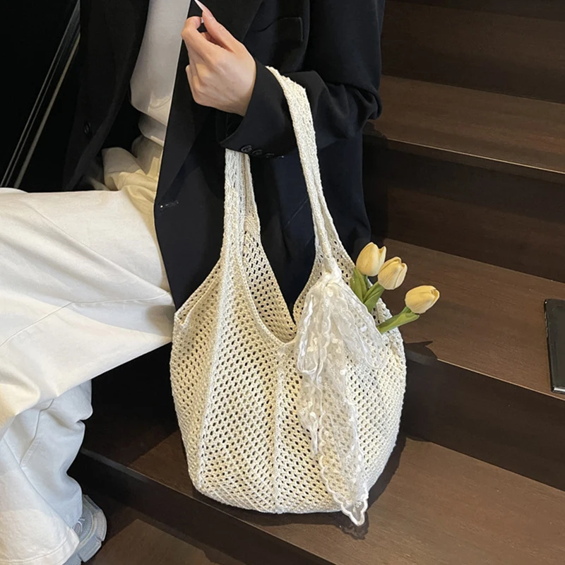 High-concerned chemical: None Place Of Origin: Shandong Province Types of bags: Shoulder & Handbags Place Of Origin: Shandong Province Exterior: None Interior: No Pocket Hardness: SOFT Pattern Type: Knitting Style: bohemian Decoration: Hollow Out Number of Handles/Straps: two Lining Material: None Handbags Type: Shoulder Bags Main Material: Cotton Shape: Casual Tote Brand Name: Yogodlns Gender: Women Origin: Mainland China CN: Shandong Closure Type: OPEN